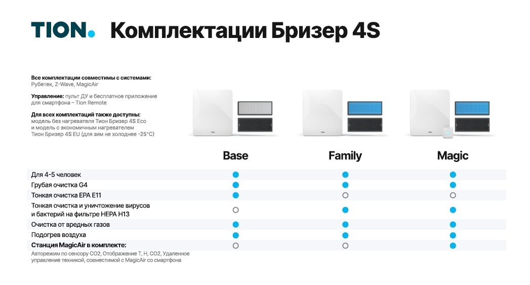 - Управление через мобильные приложения Tion Remote и MagicAir