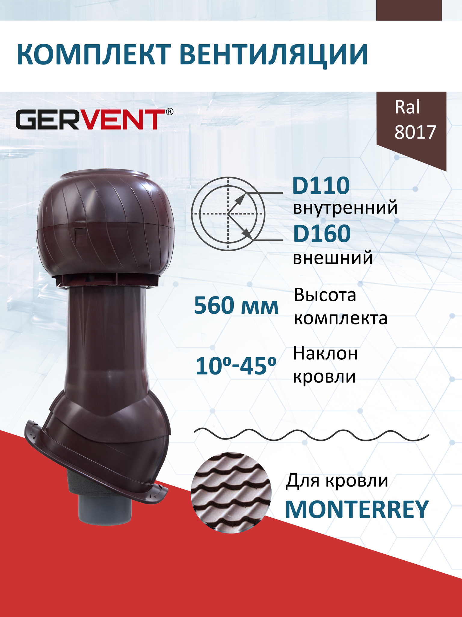 Вентиляционный выход изолированный D110/160 H=500 - 1 шт; Проходной элемент для металлочерепицы MONTERREY - 1 шт ; Колпак вентиляционный D160 - 1 шт.