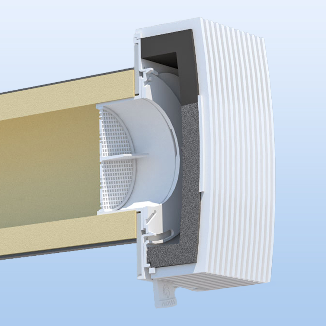 Вентиляционный стеновой клапан NovaSTYLE KIV-125 с дополнительным фильтром обеспечивает постоянный приток свежего воздуха без пыли и шума, создавая здоровый микроклимат без плесени и грибка.