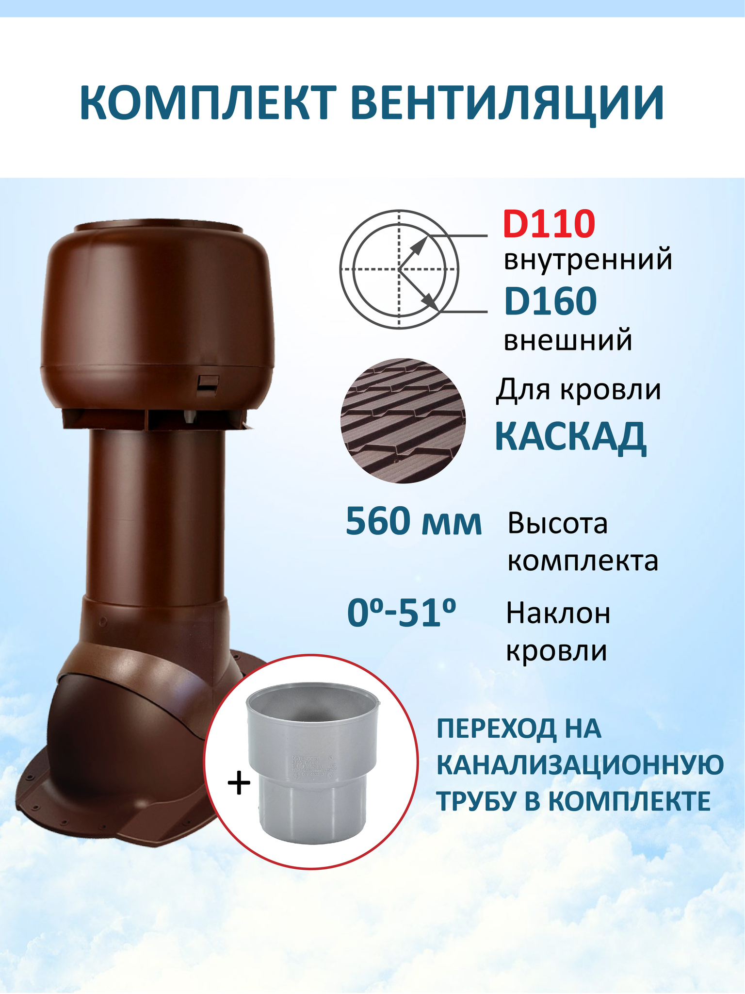 Комплект вентиляции: Колпак D160, вент. выход утепленный высотой Н-500, проходной элемент для металлочерепицы Каскад, серый состоит из: