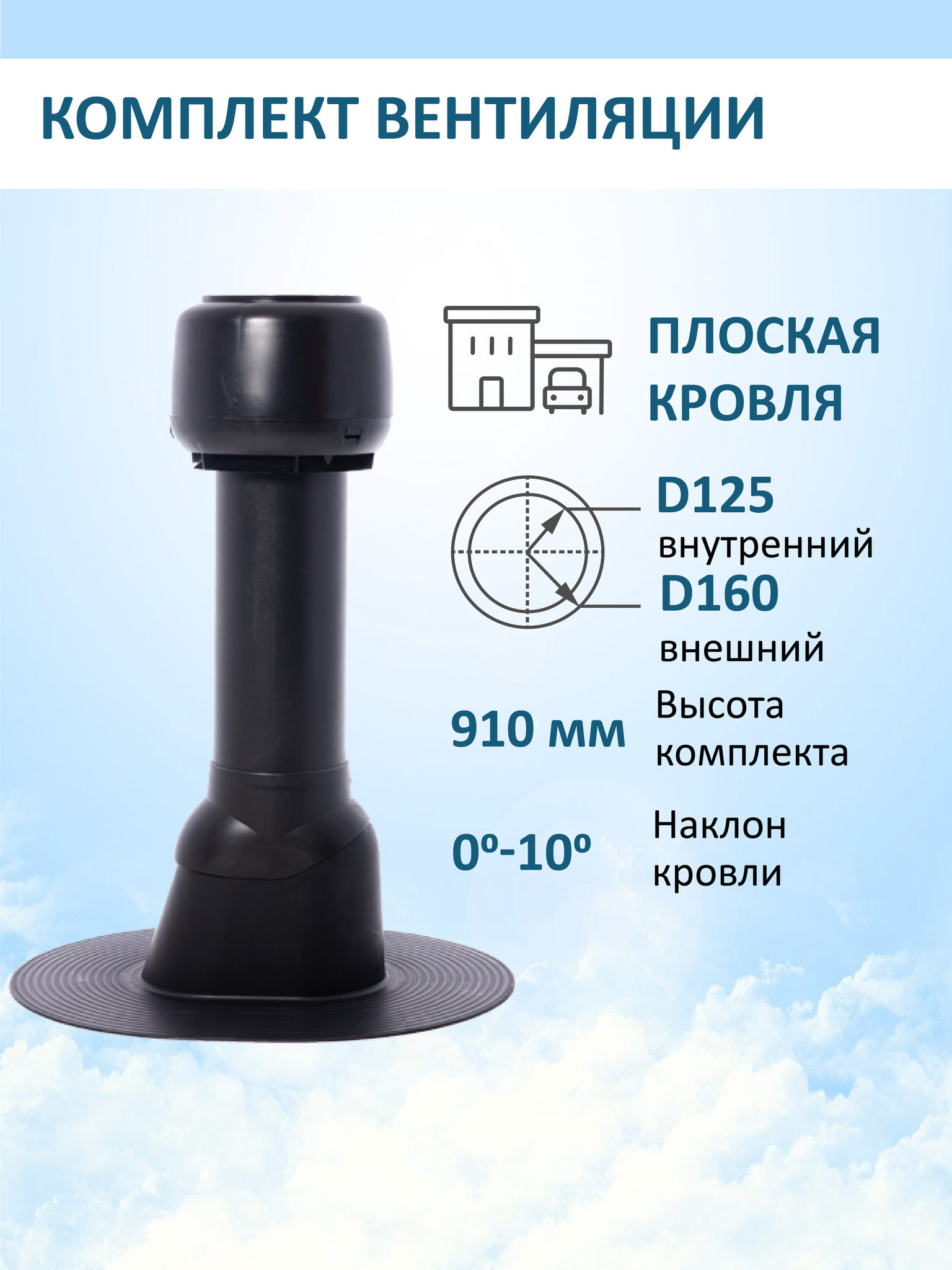 Комплект вентиляции: Колпак D160, вент. выход утепленный высотой Н-700, проходной элемент для плоской кровли состоит из: