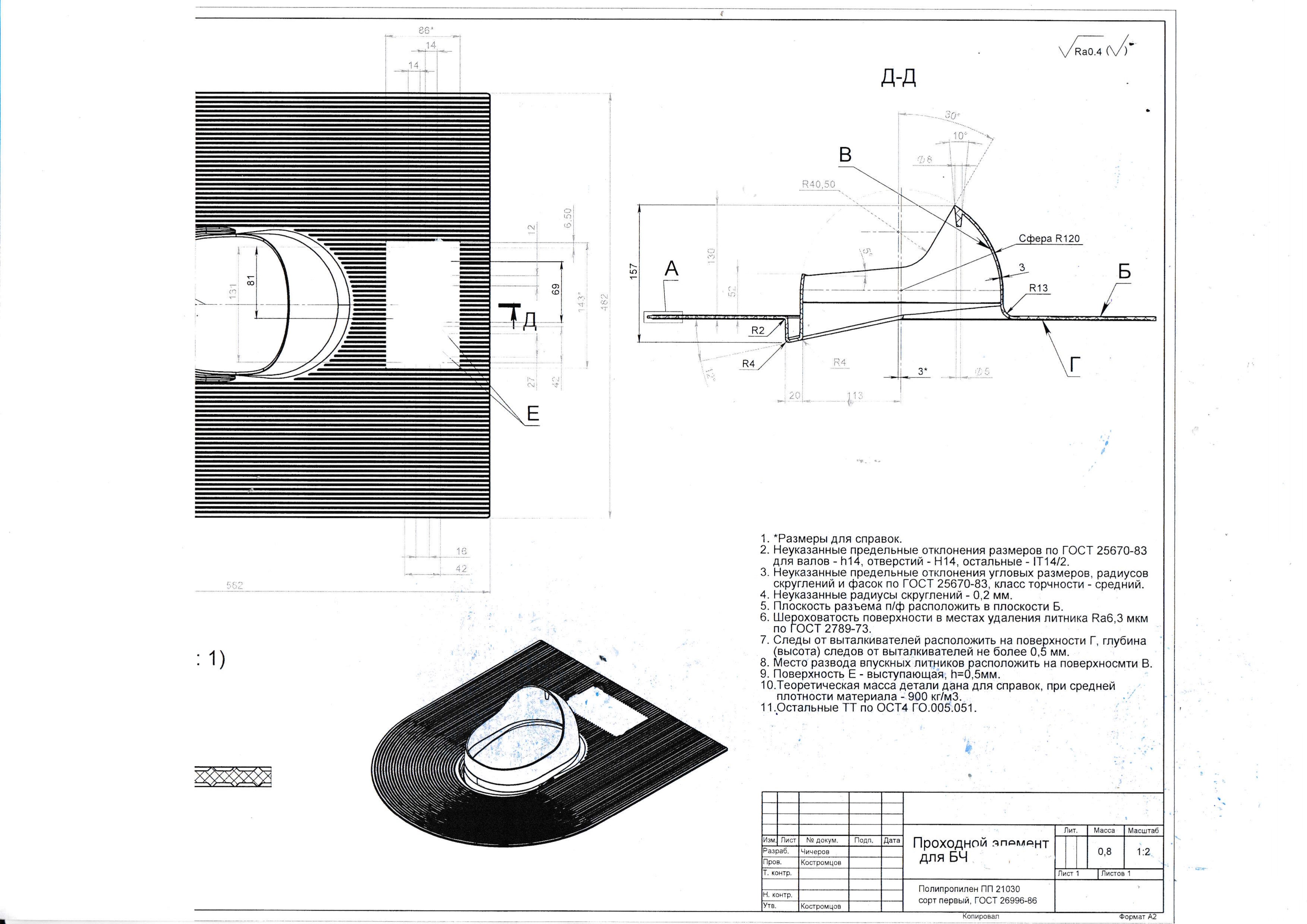 - Проходной элемент для битумной кровли. Обеспечивает герметичность в месте вывода трубы. Благодаря системе борозд создаёт жёсткое сцепление с кровлей через мастику. Монтируется непосредственно при укладке гибкой черепицы.