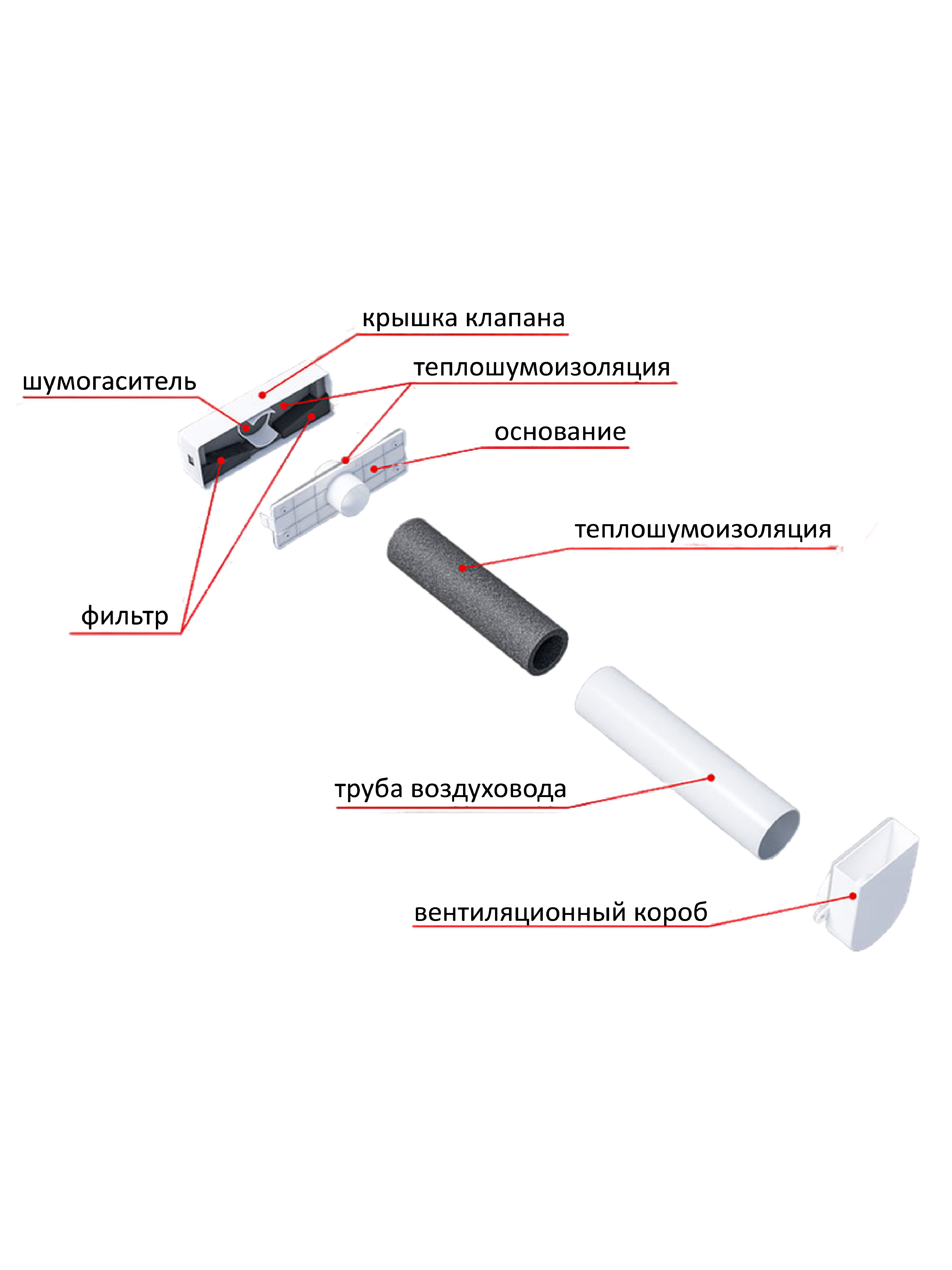 Процесс установки схож с установкой клапана NovaPLUS, однако вместо вентиляционной решетки используется вентиляционный короб.