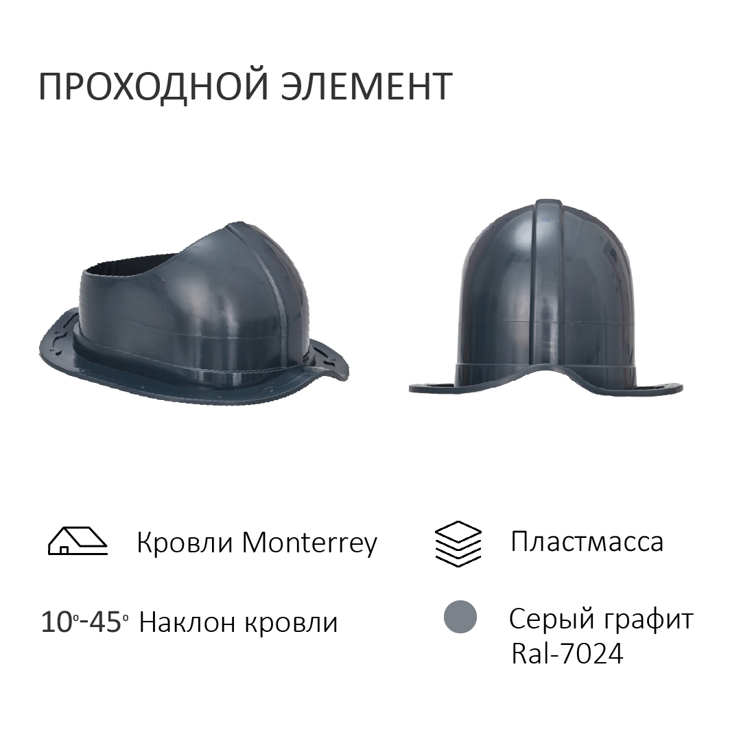 Проходной элемент GERVENT служит основанием для монтажа вентиляционного выхода. Применяется на скатные кровли с уклоном от 10° до 45° * с профилем Монтеррей (Monterrey) и его аналогами непосредственно на готовое кровельное покрытие.