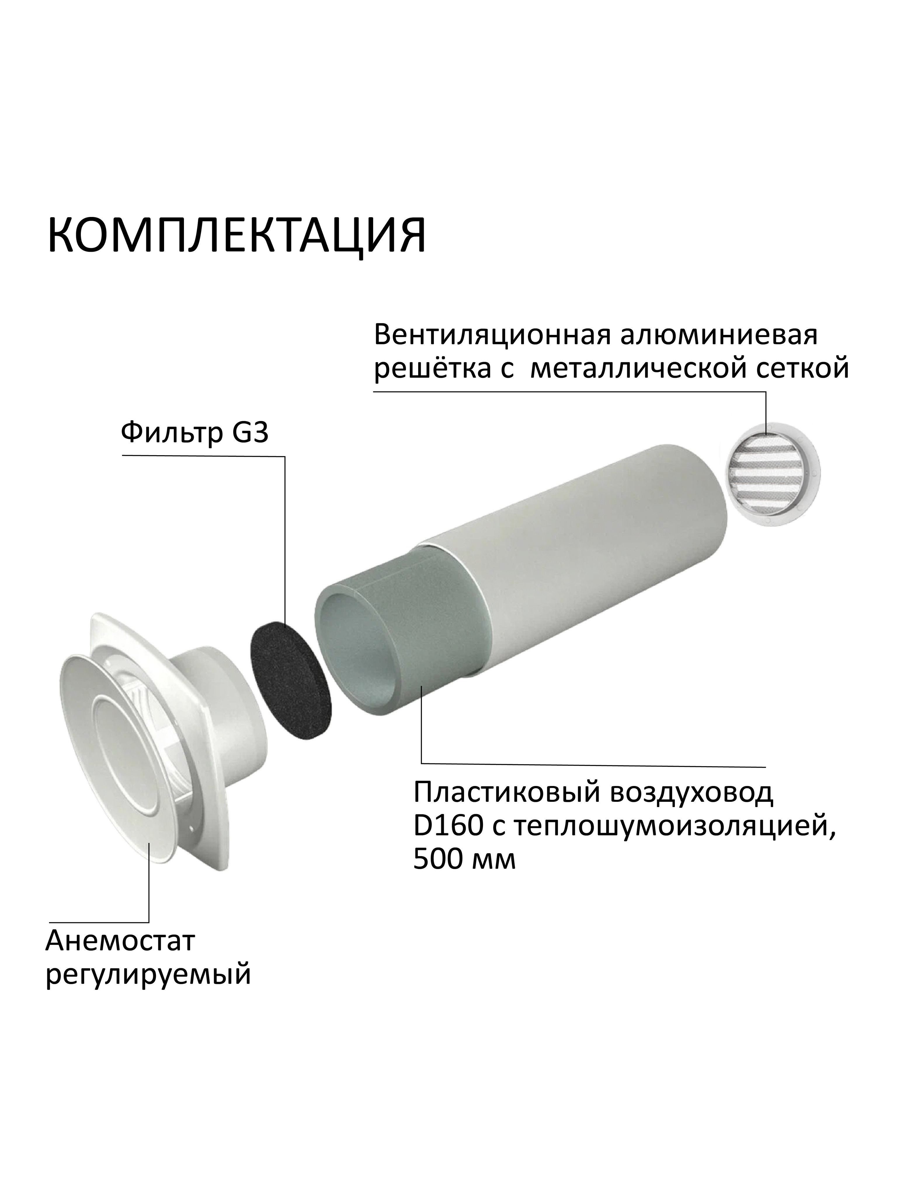 - Пластиковый воздуховод D160 с тепло- и шумоизоляцией длиной 500 мм;