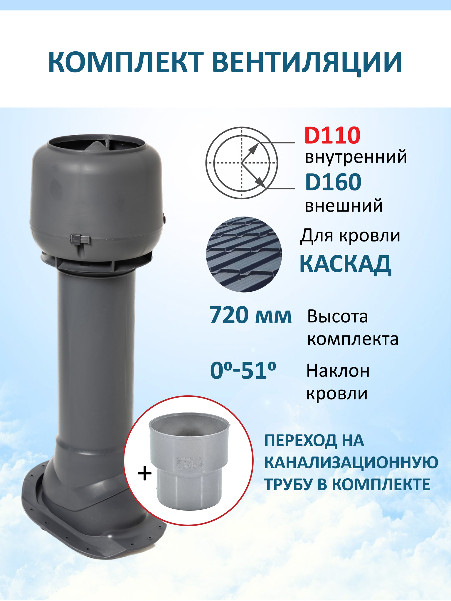 KA - проходной элемент предназначен для установки аэраторов, вентиляционных выходов диаметром 110-160 мм, антенного выхода на скатных кровлях металлочерепицы «Каскад».