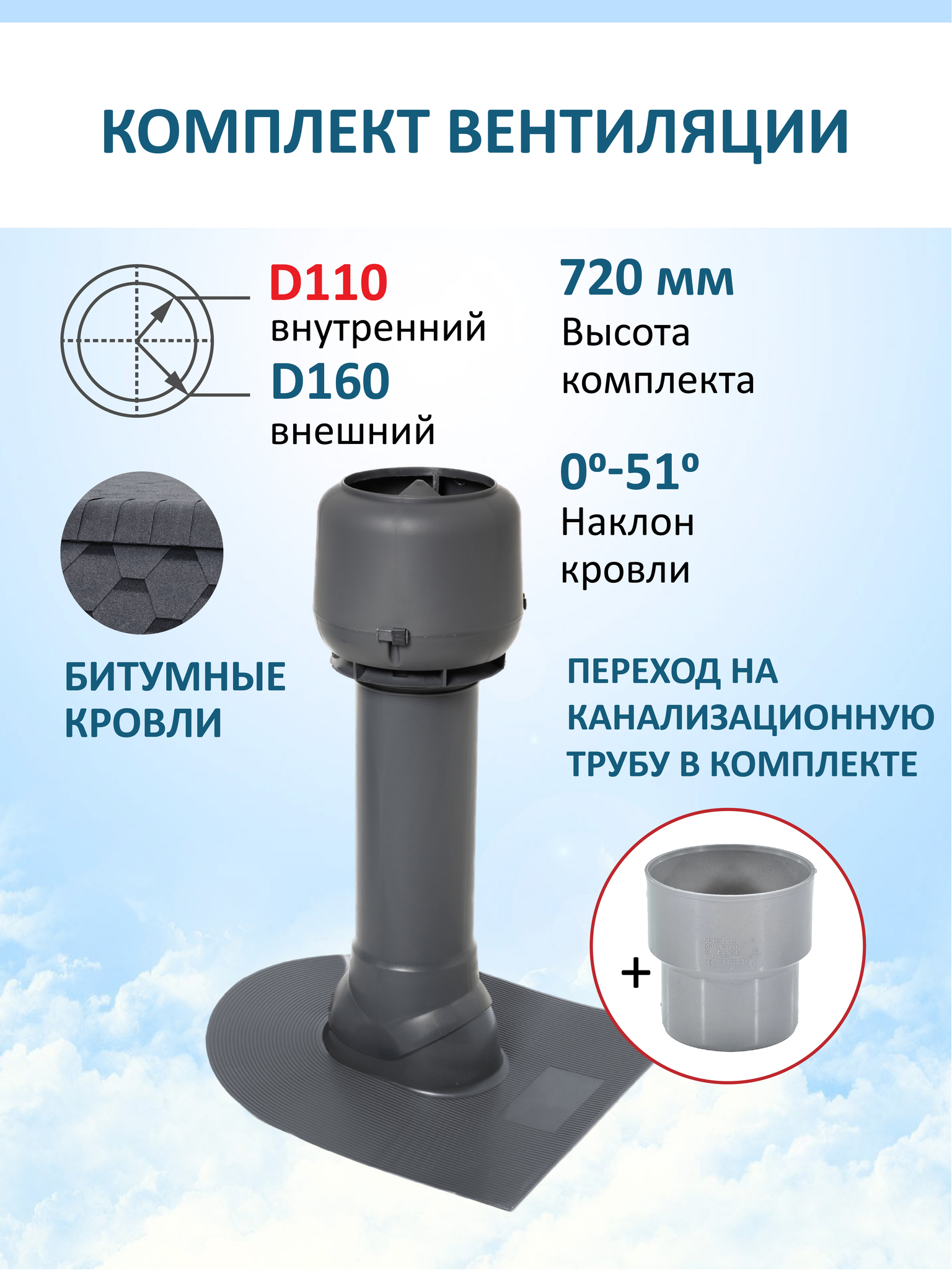 VVT160-700/KT160 - Вентиляционный выход представляет собой корпус с колпаком. Вентиляционный выход теплоизолирован для предотвращения образования конденсата. Внутренняя труба изготовлена из оцинкованной стали и имеет резиновый уплотнитель для герметизации соединения трубы и воздуховода.